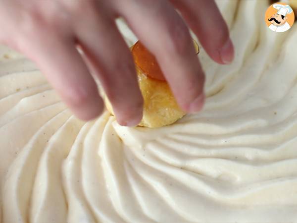 Rozbalte listové těsto a vytvořte kolem něj kruh z těsta choux, přičemž ponechte 0,5 cm rezervu, aby se těsto mohlo roztáhnout. Poté ze zbývajícího těsta choux vytvořte spirálu. Pečte 30 minut při 180 °C podle stejných pokynů jako těsto choux (krok 3).