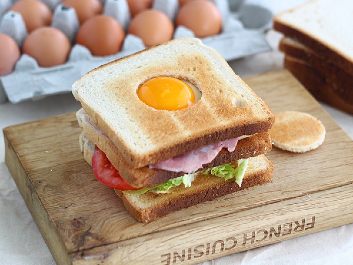 Položte ho na sendvič tak, aby byl v otvoru, který jste předtím udělali, vidět žloutek.