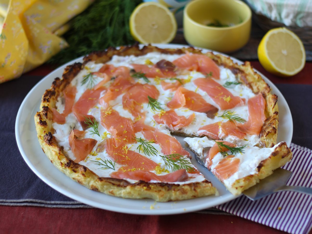 Už nemáte v lednici křehké nebo listové těsto na koláč? Nepropadejte panice! Vyzkoušejte tuto originální verzi s bramborami a uzeným lososem! Rozlučte se s klasickým těstem, tady brambory tvoří křupavý základ, který se rozplývá v ústech. Tento recept se skvěle hodí například na lehkou večeři nebo gurmánský brunch (nakrájený na malé plátky) a vaše hosty určitě nadchne ;)