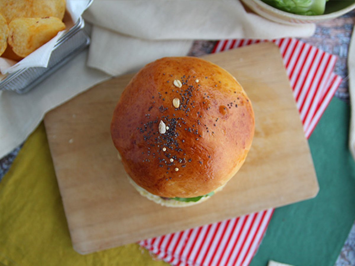 My jsme udělali burger s čerstvým chlebem a rozhodli jsme se nechat chléb obyčejný, aby byl měkký. Můžete je také opéct tak, že je rozkrojíte napůl a položíte na několik minut na rozpálenou pánev lícem dolů. Váš burger bude křupavější.