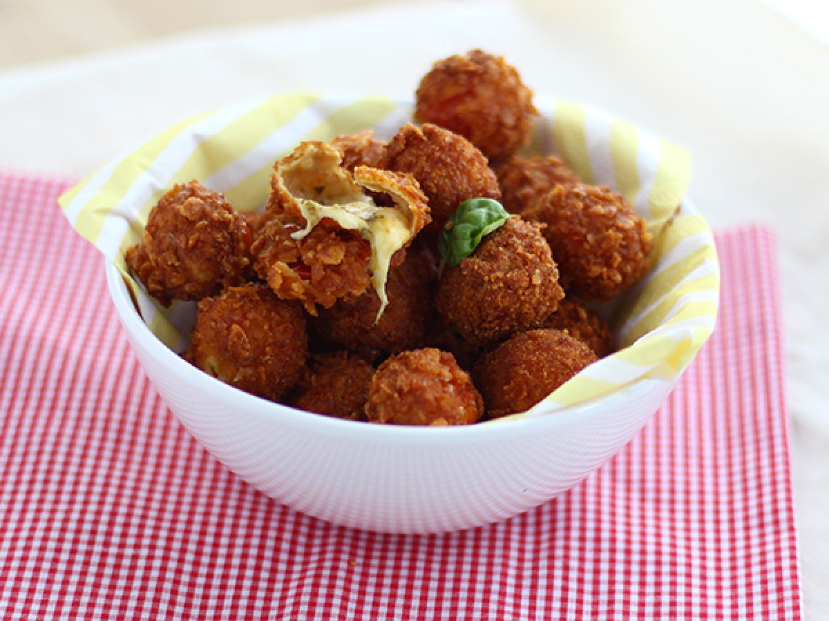 Máte rádi tradiční italský recept na pizzu margherita? Tady je nový způsob, jak si ji vychutnat: v kuličkách! Stačí tyto malé kuličky několik minut smažit a výsledek bude křupavý. Skvěle se hodí k aperitivu a můžete jimi oživit i saláty. Vložené do nádoby tupperware se skvěle hodí i na piknik :-)
