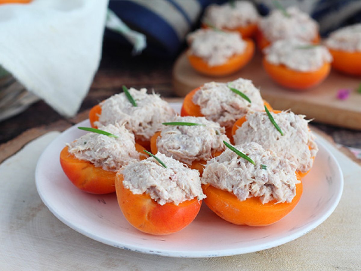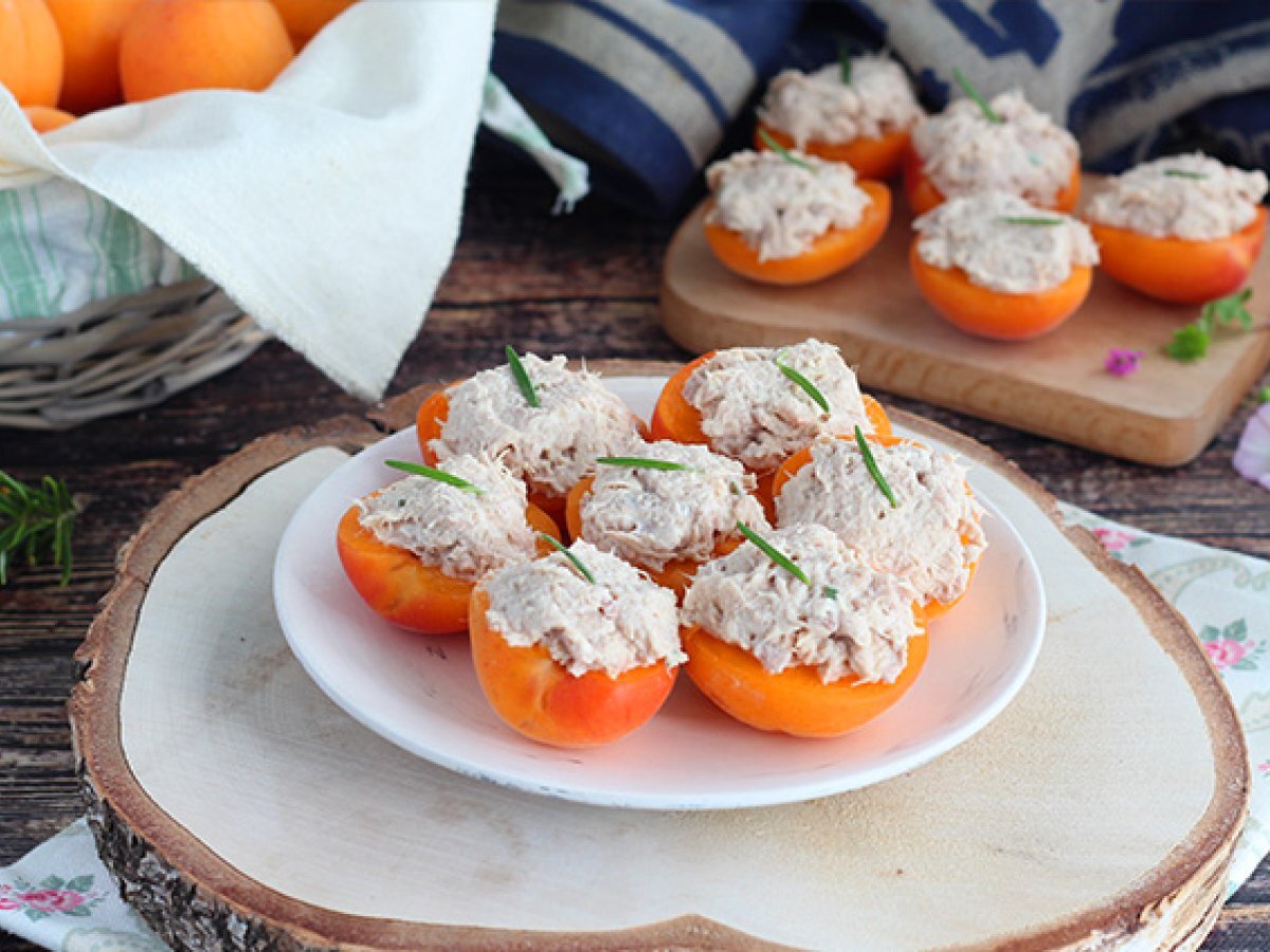 Pro snadný, bezva a sladko-slaný předkrm si připravte tyto meruňky plněné tuňákem a čerstvým sýrem! K přípravě tohoto receptu, který byl testován a schválen celým týmem Ptitchef, potřebujete pouze 4 ingredience ;-) Nezapomeňte na rozmarýn: čerstvou bylinku, která zvýrazní chuť této směsi ;-).