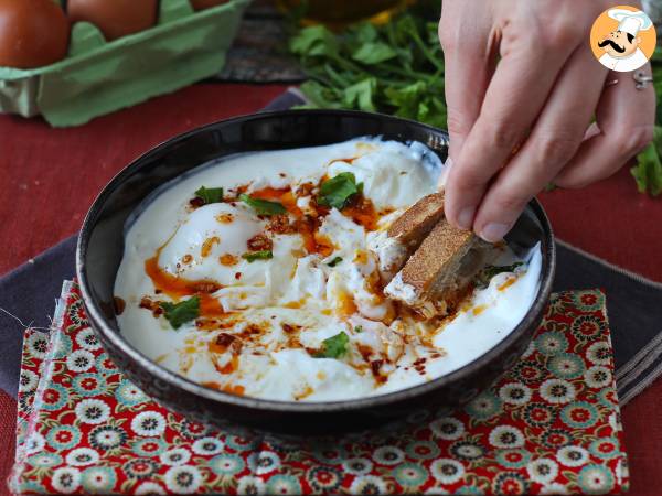 Turecká vejce, známá také jako çılbır, jsou pokrmem, který má vše: lahodný, uklidňující a plný chuti! Vejce pošírovaná na krémovém základu z řeckého jogurtu. A k tomu všemu? Pikantní olej s česnekem, paprikou a chilli vločkami, který probudí vaše chuťové pohárky. S několika lístky čerstvé petrželky pro dotek zeleně a plátky opečeného chleba na závěr je to zaručená pochoutka. Tento rychlý a snadný pokrm je skutečným koncentrátem chutí ;-)