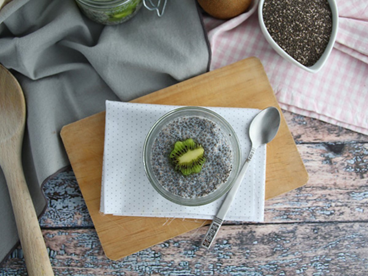 Chcete-li si dopřát vydatnou, svěží a ovocnou svačinu, zvolte tento recept na pudink s chia semínky a kiwi! Je snadný na přípravu a nemusí se vařit! Jinými slovy: žádná bolest hlavy :-) Stačí jen smíchat ingredience, nechat odstát, aby semínka při kontaktu s mlékem nabobtnala, a... je to! Tato super semínka vás zasytí vitamíny, vlákninou a rostlinnými bílkovinami! Díky použití rostlinného nápoje (mandlového, rýžového, sójového...) je tento dezert ideálním řešením pro vegetariány a vegany. Jako bonus je zaručeně bezlepkový. Zdravá přestávka v kteroukoli denní dobu :-)
